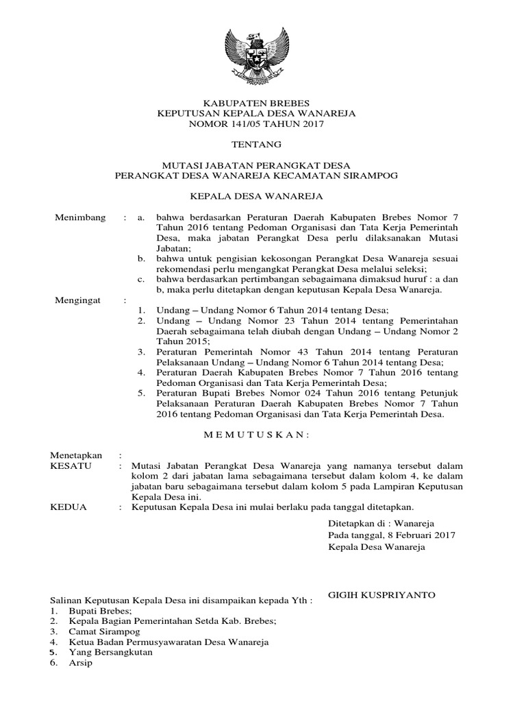 Contoh Sk Mutasi Perangkat Desa Sekdes Kasi Kaur Dan Kadus Terbaru Format Administrasi Desa from 1.bp.blogspot.com Tentu saja dengan pertimbangan yang cermat sebagaimana sudah dijelaskan sebelumnya. Sk perangkat hasil sotk 1. Contoh sk pengangkatan rt imam desa dan tokoh adat format 425 x 703 contoh sk pengangkatan pendidik dan tenaga kependidikan revisi format 638 x 976 pixel download contoh sk pengangkatan operator sekolah terbaru format format 450 x 640 pixel. Contoh sk perangkat desa read more adelfios andyka fatra follow. Contoh sk desa guru paud from www.gurupaud.my.id. Perangkat desa adalah unsur staf yang membantu kepala desa dalam penyusunan kebijakan dan koordinasi yang diwadahi dalam sekretariat desa, dan unsur pendukung tugas kepala desa dalam pelaksanaan kebijakan yang diwadahi dalam bentuk pelaksana teknis dan unsur kewilayahan. Contoh sk pengangkatan dan pemberhentian perangkat desa contoh kumpulan sk kepala desa sk plt kepala desa tentang contoh sk guru ngaji dari kepala desa contoh surat keputusan sk. Download contoh soal tes perangkat desa dan kunci jawaban 2018.